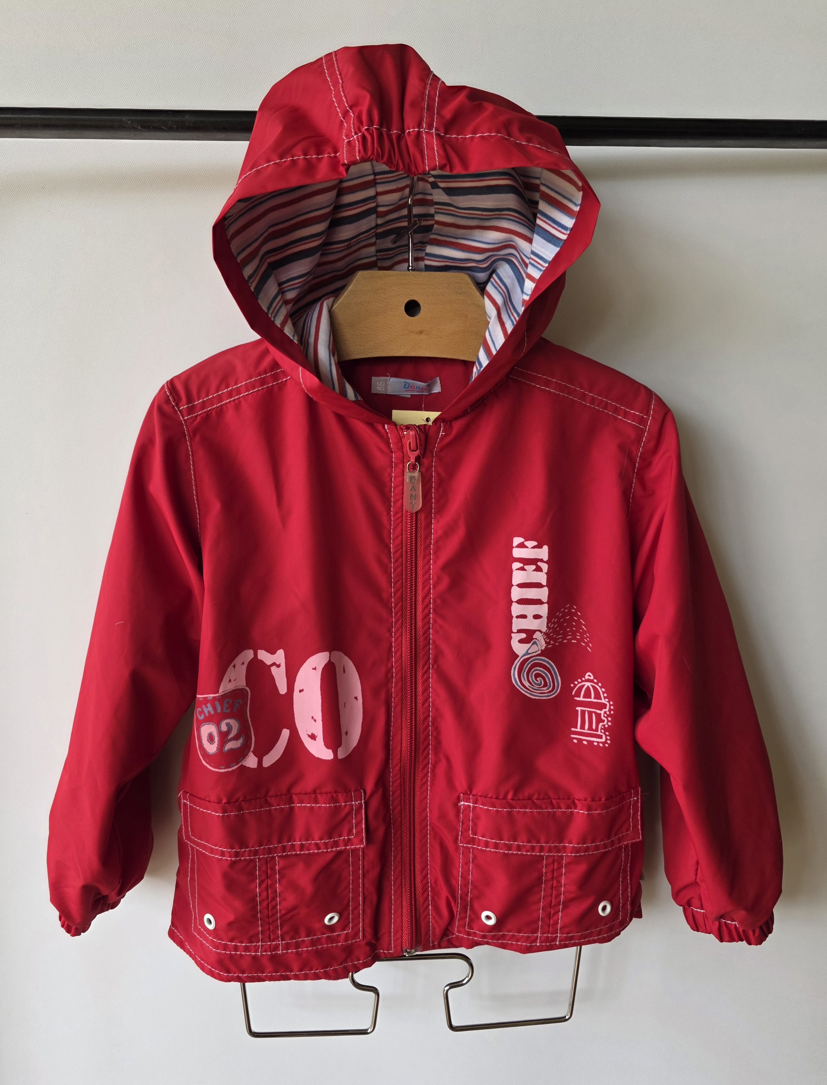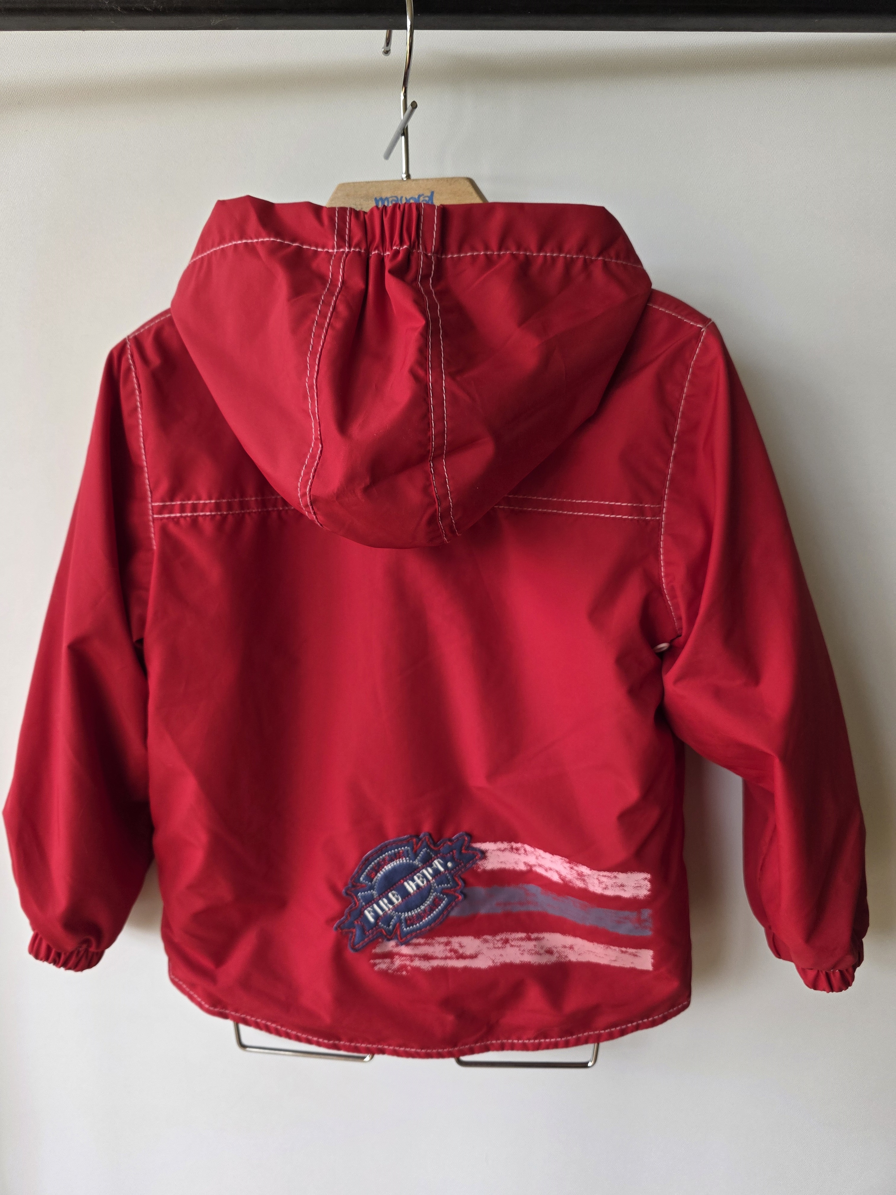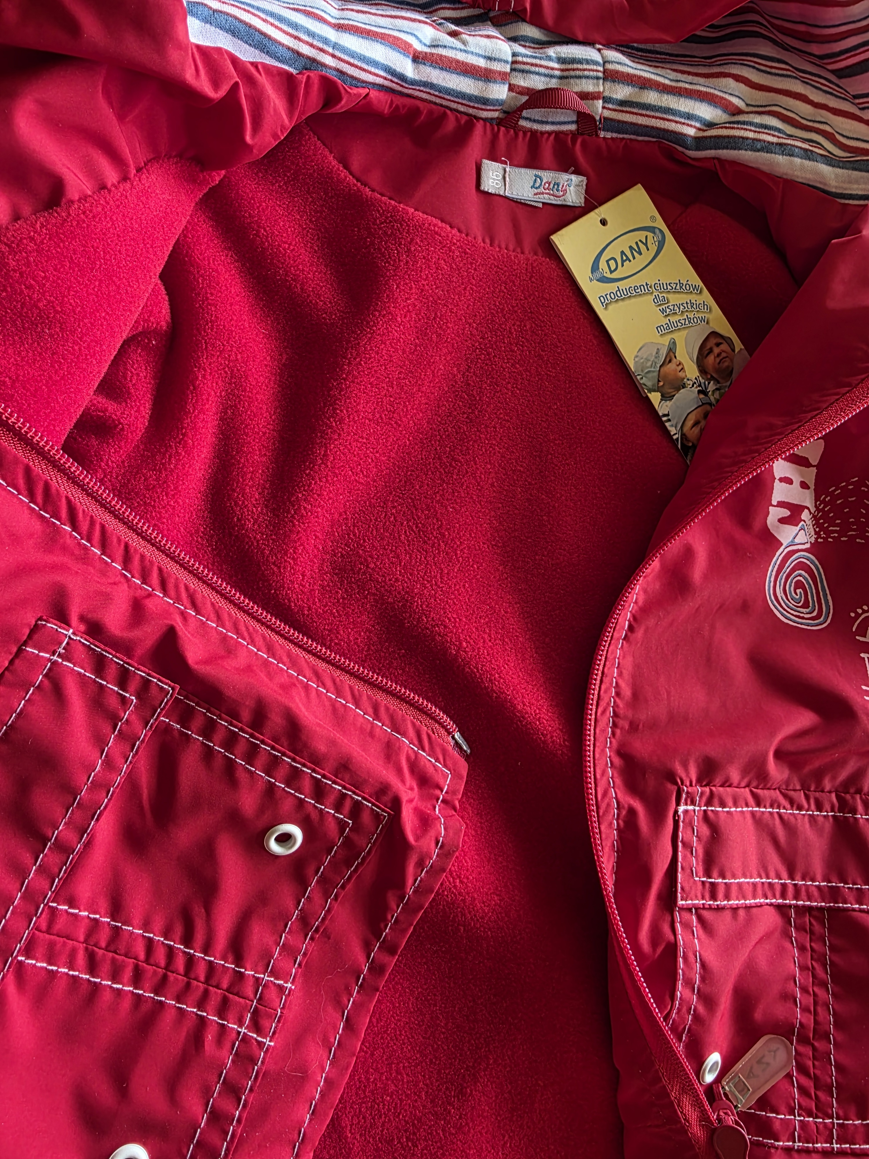 Kurtka z kapturem na polarze w kolorze czerwonym.