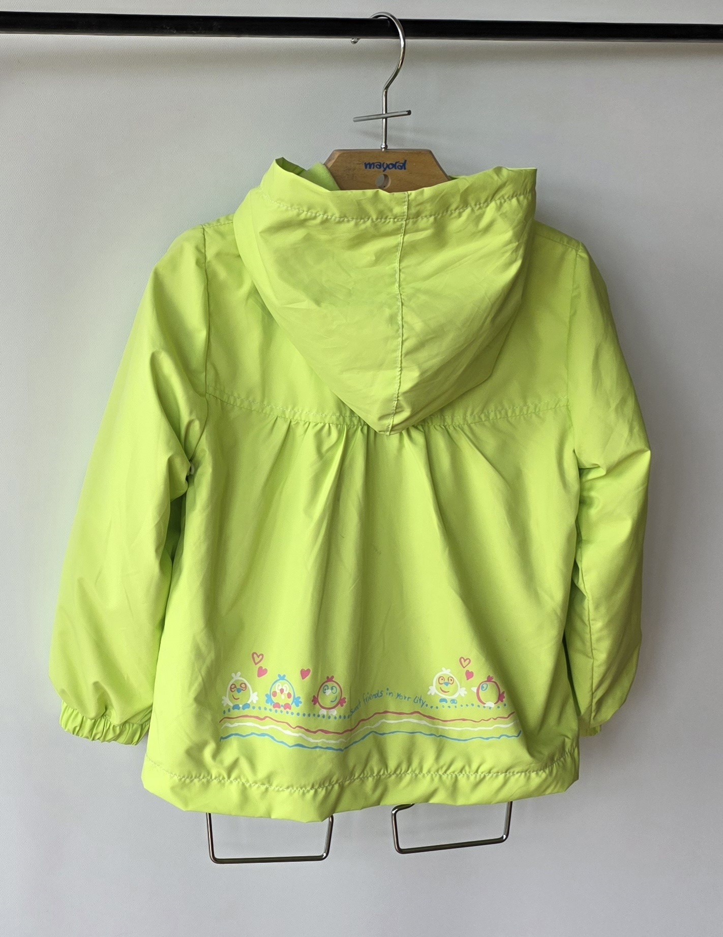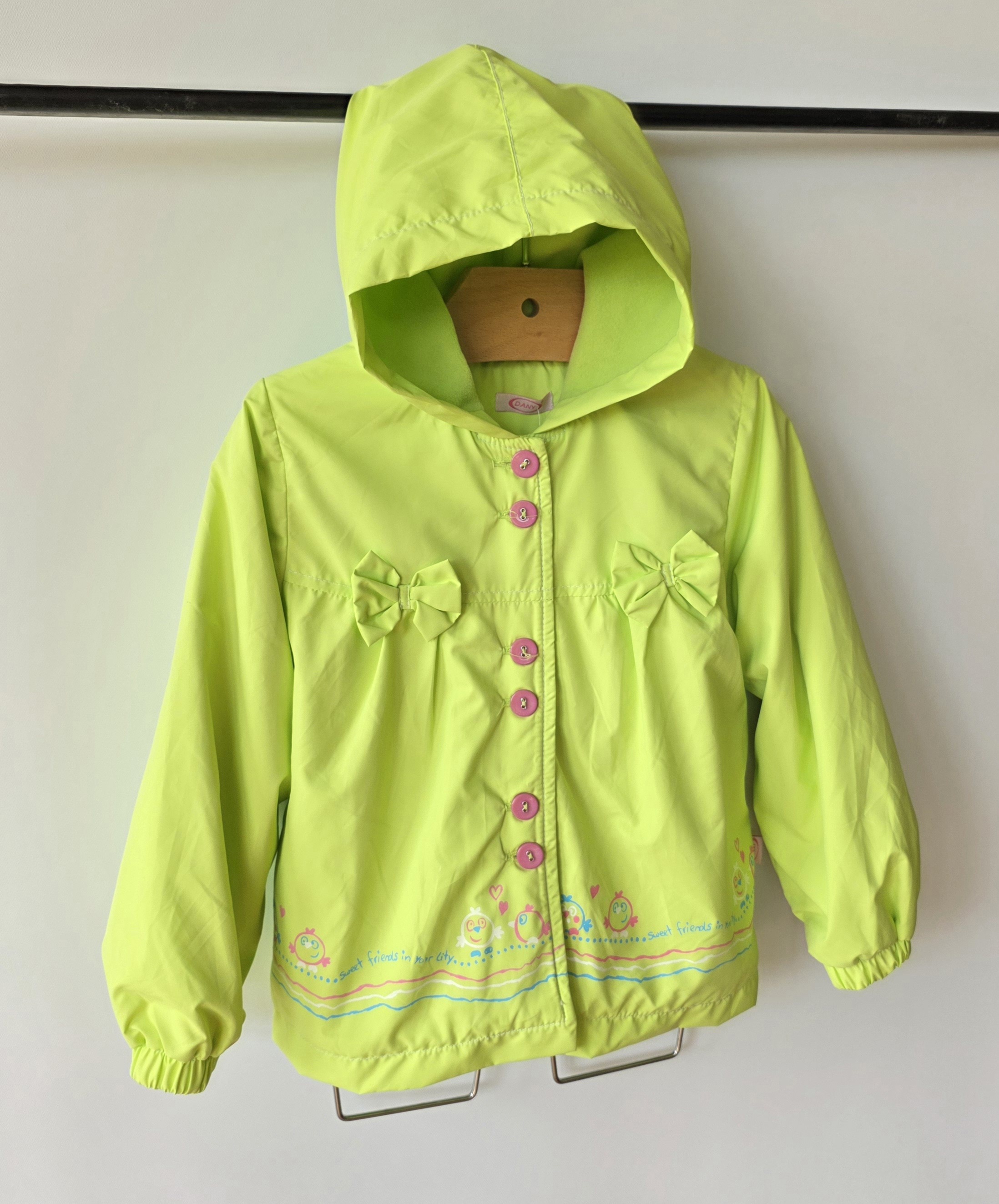 Kurtka z kapturem koloru jasno zielonego na pistacjowym polarze.