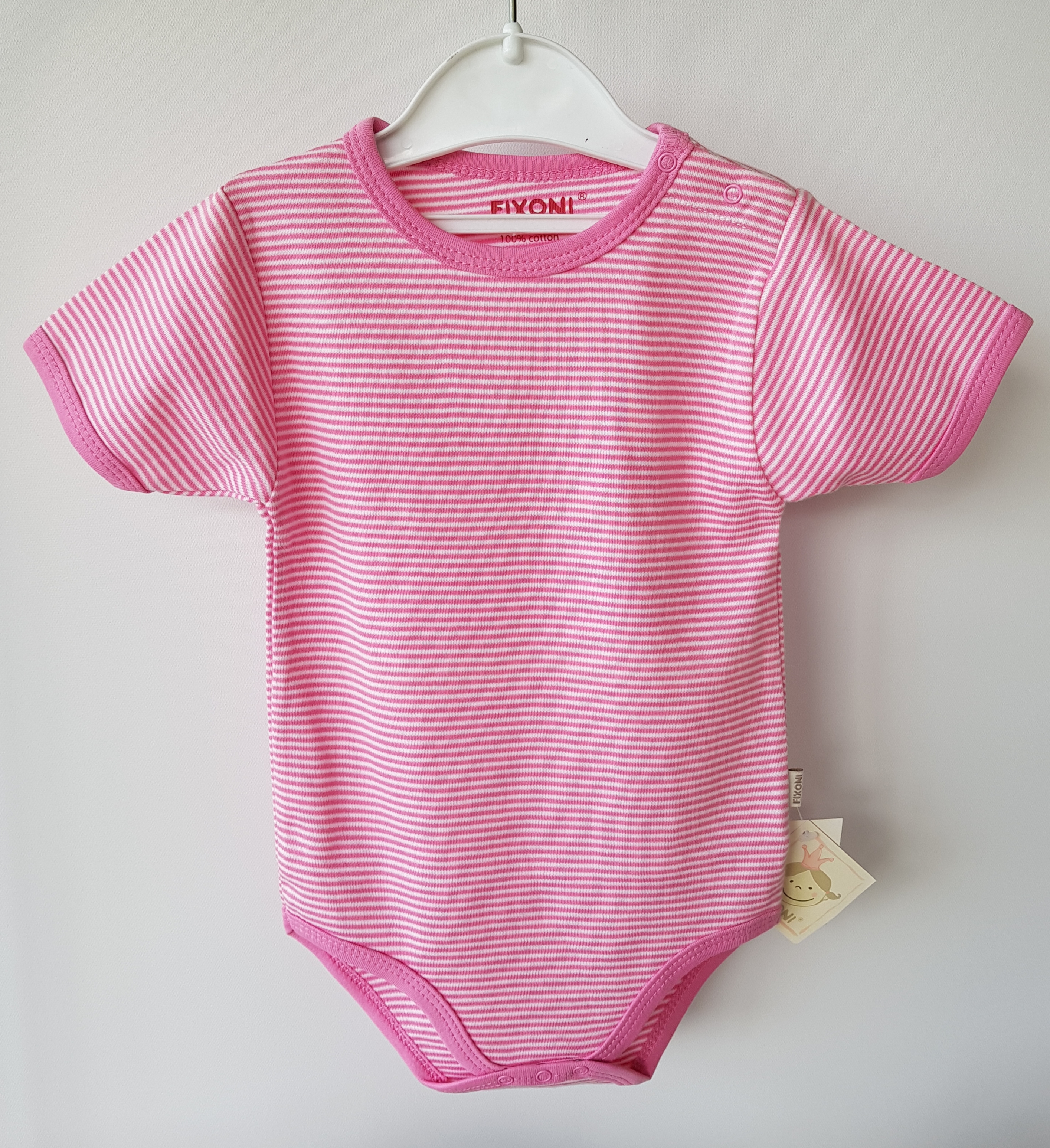Fixoni 60492 Body Krótki Rękaw Paseczki "Kaczuszki" - Biało Różowe - Rozmiar 56 - 80