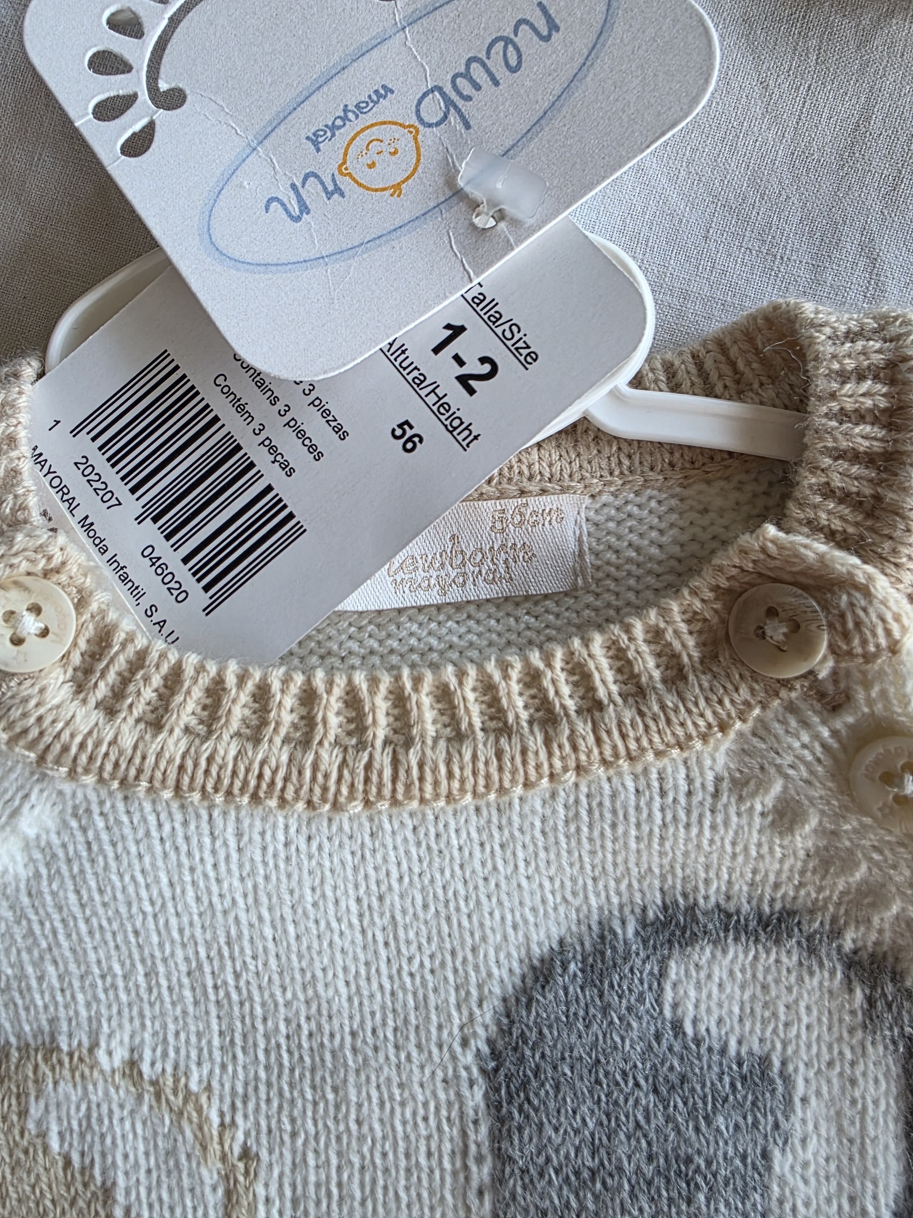 Strona główna » ODZIEŻ » KOMPLETY » Mayoral 2207 Komplet Sweterek, Szorty Materiałowe I Rajstopy - Ekri - Rozmiar 56 - 80