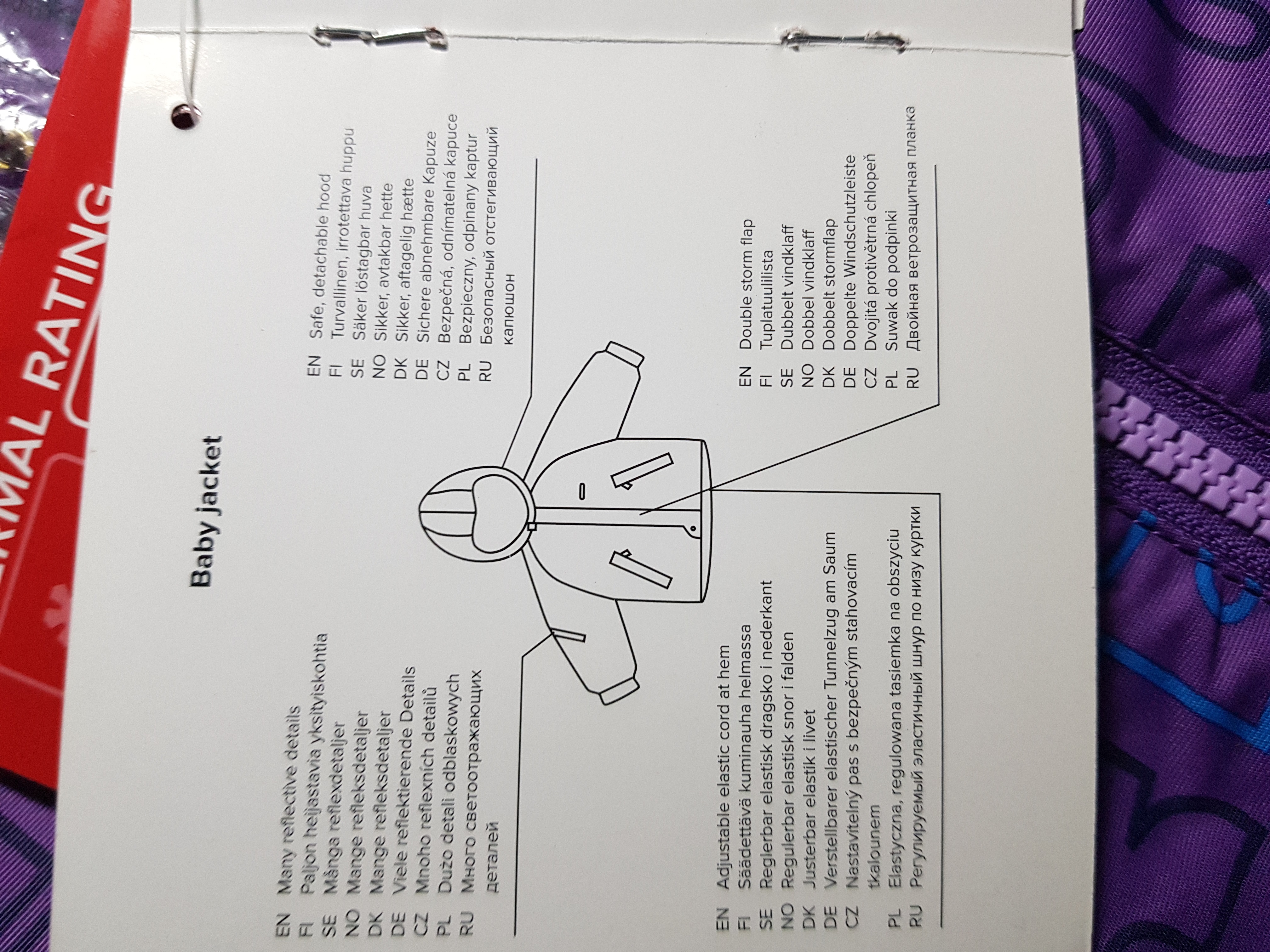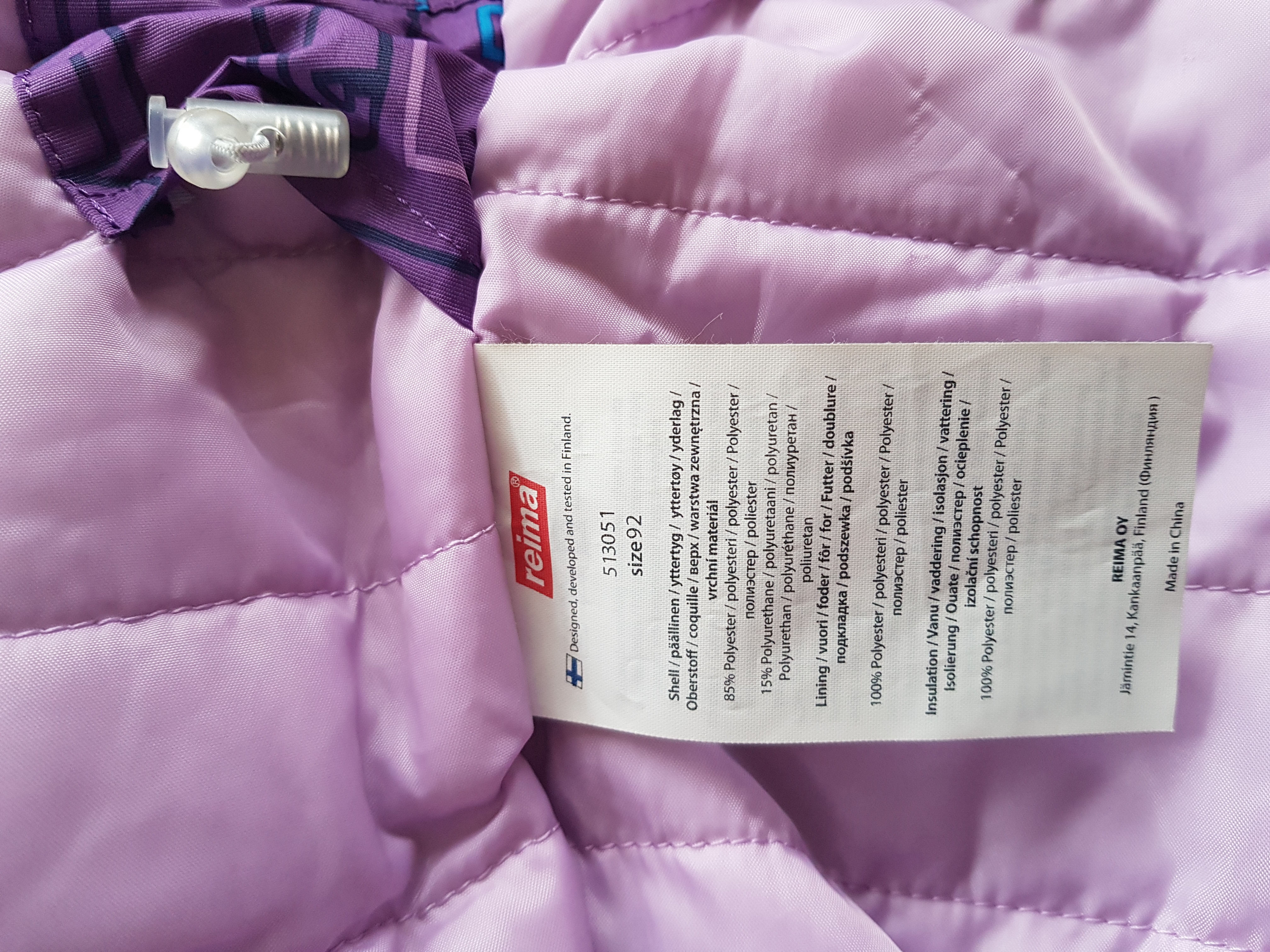 Fioletowy komplet ze wzorem na kurtce.