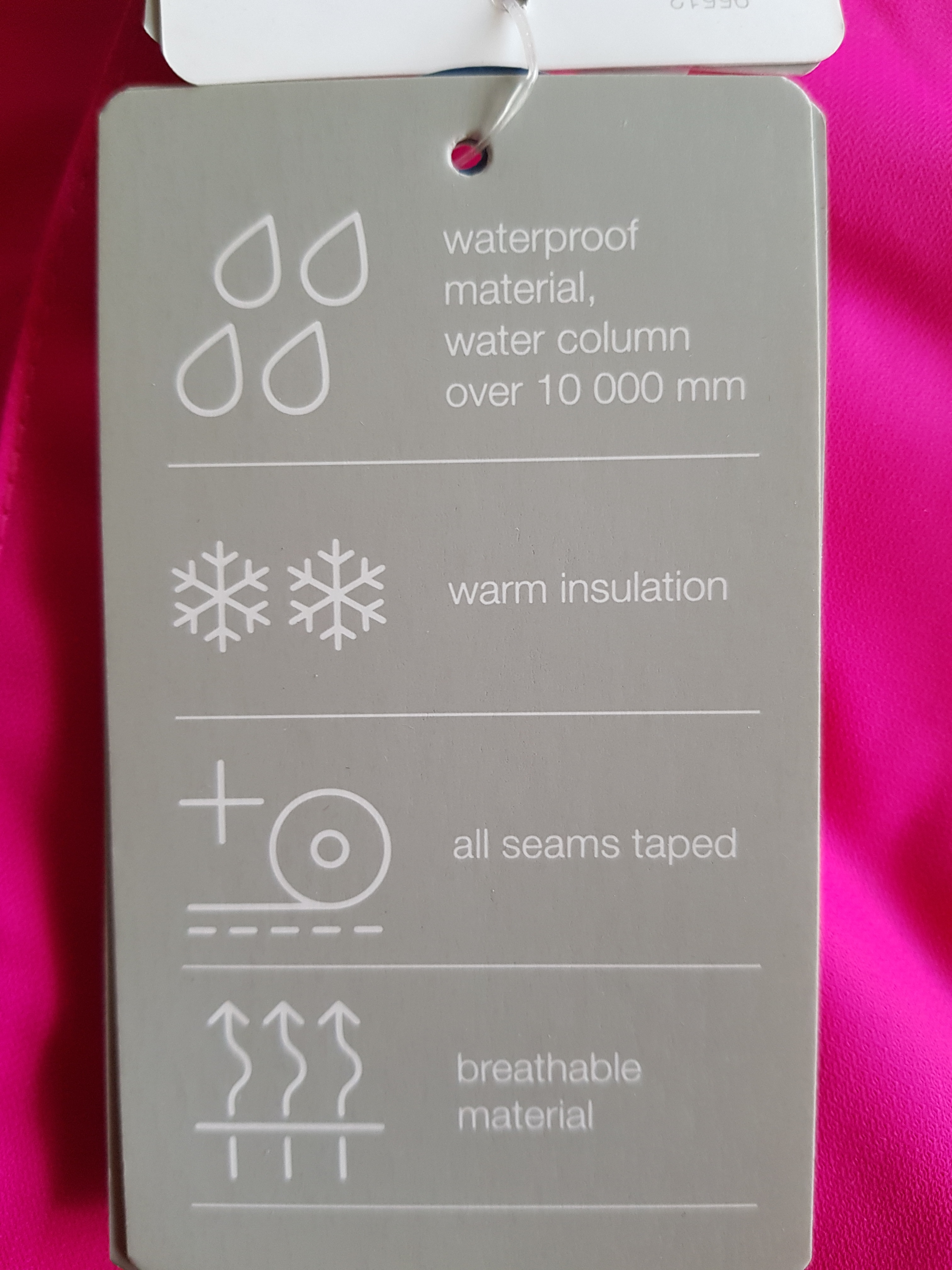 Pielęgnacja: Prać oddzielnie na lewej stronie. Zapiąć wszystkie zamki i rzepy. Stosować proszki do prania bez wybielacza. Nie stosować środków zmiękczających. Wyjąć z pralki po zakończonym programie prania w celu uniknięcia zmiany koloru. Można suszyć w suszarce bębnowej i szafkowej (maks. 40 °C).